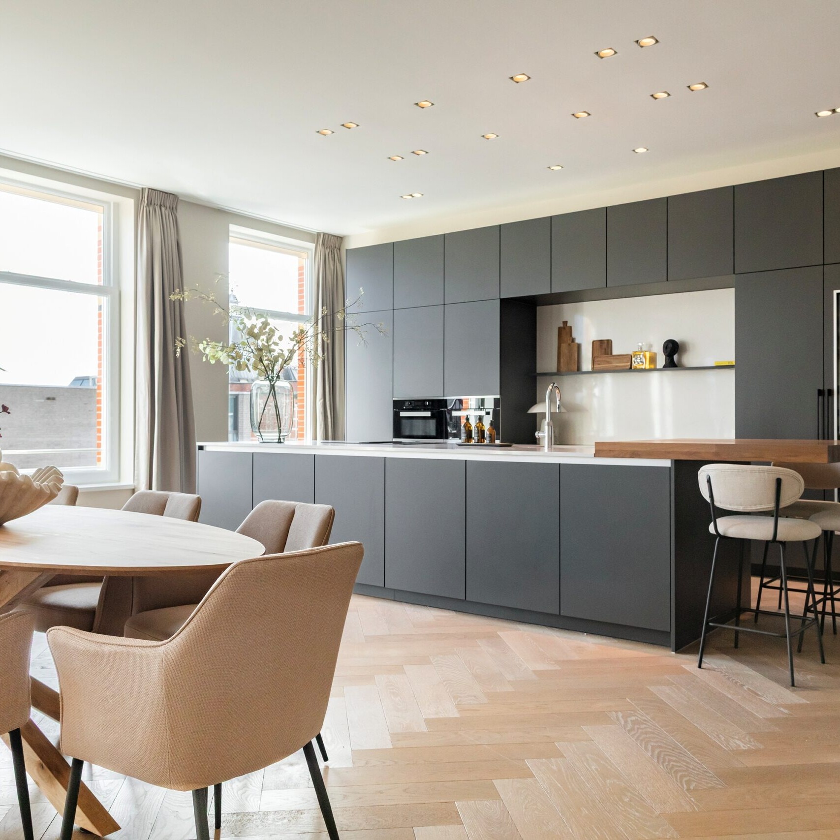 Stap binnen in een oase van licht, ruimte en verfijning in dit unieke high-end appartement van maar liefst 239 m². Met een indrukwekkende breedte van 15 meter en talloze grote raampartijen baadt deze woning in natuurlijk licht en biedt het een ongeëvenaarde woonervaring in het hart van Amsterdam.