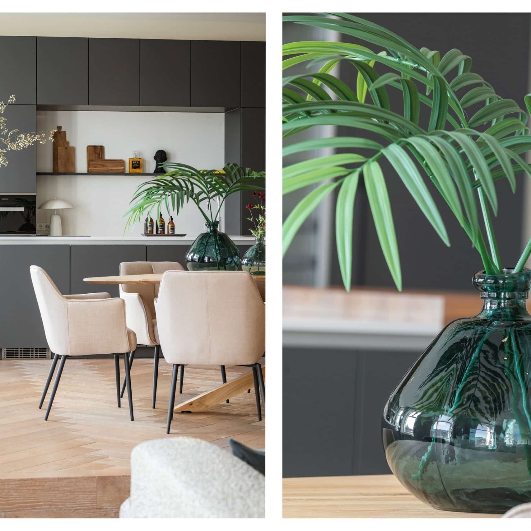 Bij de entree is een ruime garderobe aanwezig met gastentoilet. Aan de voorzijde van het appartement vindt u een ruim eetgedeelte en een hoogwaardige open keuken. De keuken is voorzien van kookeiland met inductiekookplaat, veel opbergruimte, Quooker, oven en combi-stoomoven, een grote ijskast, vriezeren een wijnklimaatkast . Een perfecte setting voor zowel ontspanning als verfijnd dineren. Ook hier heeft u fantastisch zicht op het Rijksmuseum en het groene Museumplein.