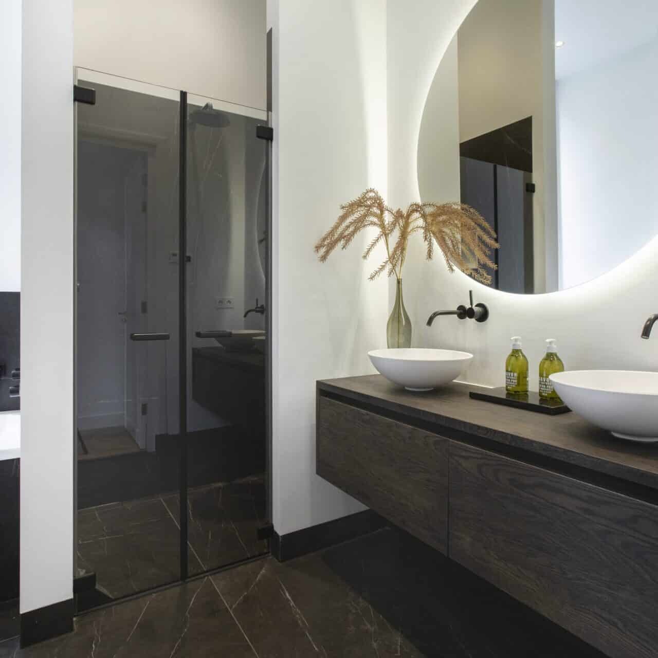 Centraal in het appartement gelegen bevindt zich de luxe badkamer. Deze is voorzien van natuurlijk daglicht, een ligbad, dubbel wastafelmeubel, ruime inloopdouche en toilet. Het tweede separate toilet is te bereiken via de hal.