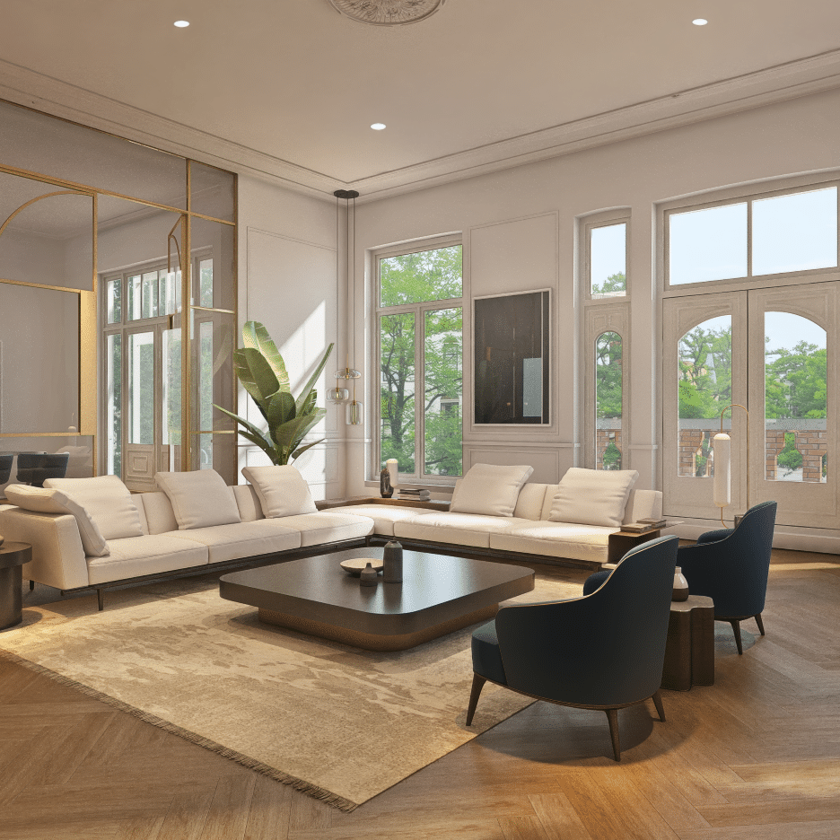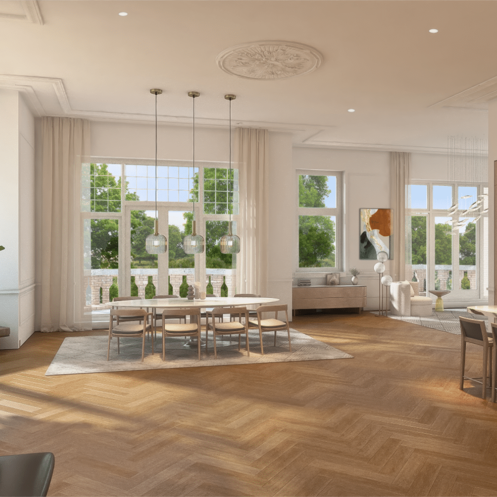 Deze appartementen hebben woonoppervlaktes variërend van 280 m² tot 360 m² en bevatten onder andere diverse privéliften en een inwendige parkeergarage. Het huidige parkeerterrein aan de achterzijde zal plaats maken voor een zorgvuldig aangelegde tuin, waarmee deze in ere hersteld wordt. Ook worden er verschillende duurzame maatregelen getroffen.